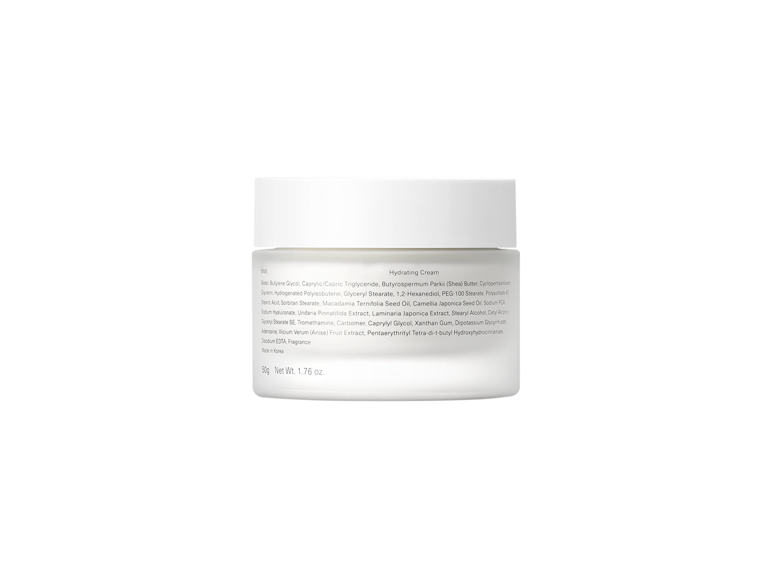 水、BG、トリ(カプリル酸/カプリン酸)グリセリル、シア脂、シクロペンタシロキサン、グリセリン、水添ポリイソブテン、ステアリン酸グリセリル、1,2-ヘキサンジオール、ステアリン酸PEG-100、ポリソルベート60、ステアリン酸、ステアリン酸ソルビタン、マカデミア種子油、ツバキ種子油、PCA-Na、ヒアルロン酸Na、ワカメエキス、マコンブエキス、ステアリルアルコール、セタノール、ステアリン酸グリセリル(SE)、トロメタミン、カルボマー、カプリリルグリコール、キサンタンガム、グリチルリチン酸2K、アデノシン、ダイウイキョウ果実エキス、テトラ(ジ-t-ブチルヒドロキシヒドロケイヒ酸)ペンタエリスリチル、EDTA-2Na、香料