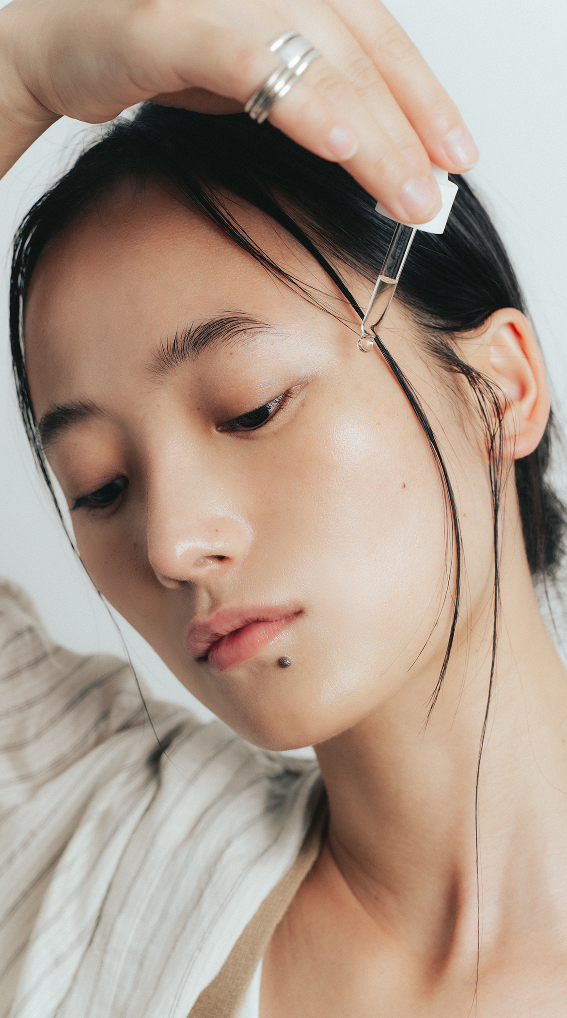 手または顔に適量をとり、肌のキメに沿ってやさしくなじませてください。